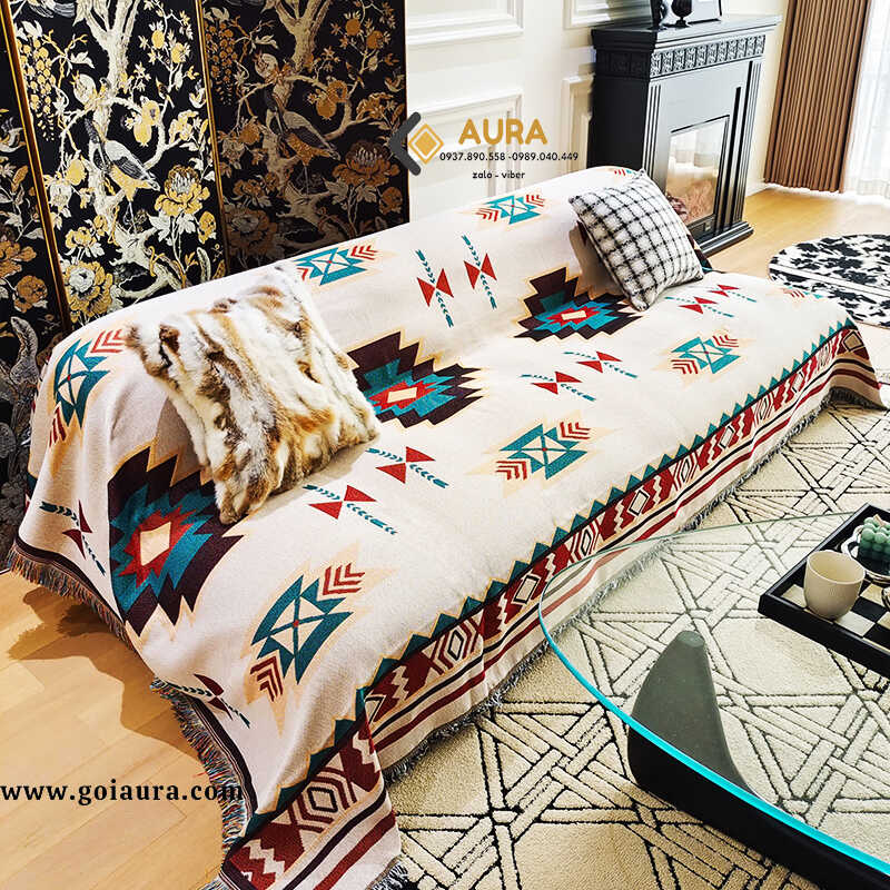 Khăn phủ sofa hay còn được gọi là thảm sofa, khăn sofa, thảm vintage với mẫu mã đa dạng,màu sắc tươi sáng, họa tiết độc đáo là điểm nhấn cho sofa của không gian nội thất.1.8x2.6m